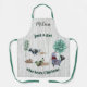 Le tablier Country Folk Art dit "Just a Girl Who Loves Chickens" (Juste une fille qui aime les poulets), et présente trois poulets d'art folklorique multicolores, à motifs, qui grignotent à leur alimentation de poulet glacé. Il y a deux arbres d'art populaire et un buisson dans la scène et tout est mis contre un arrière - plan blanc lavé à grains de bois. Vous le personnalisez en haut avec le modèle facile à utiliser fourni. Les couleurs sont principalement bleues et vertes. Une autre version est également disponible dans notre boutique qui est principalement rose.