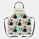 Add atomic age vibes to your kitchen with cute custom apron featuring mid century black atomic cats with colorful boomerangs in pink, orange and teal. Add your name using personalize template to make it uniquely yours