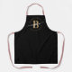 Tablier personnalisé avec monogramme élégant, moderne, minimaliste noir et or avec initiale de nom en écriture script. Caractérisé par un monogramme initial et une signature de nom féminin en calligraphie manuscrite avec des queues en volutes et un cadre de cercle pointillé autour de votre nom. Cadeau féminin parfait pour maman, petite amie, anniversaire et quiconque aime un style simple moderne et joli.