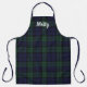 Joli tablier en plaid fait dans le traditionnel motif tartan noir, vert et bleu Black Watch. Le texte blanc personnalisé, sur la zone de bib, est prêt à être personnalisé pour vous-même ou comme une excellente idée cadeau.