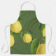 L'élégant tablier est doté d'un motif moderne imprimé citron vert ; citrons jaunes frais complétés par un design de cercle géométrique en vert avec de faibles accents dorés