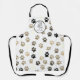 Un tablier d'affaires de toilettage de chien mignon sur un arrière - plan motif empreinte de patte. Ajoutez vos informations au verso de la carte. Tons de gris, de bronze et de marron. Une police fantaisiste.
