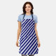 Le moderne Blue White Stripes Motif Apron présente un design moderne à rayures bleues en diagonale. L'tablier qui peut être utilisé pour la maison ou le travail.