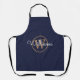 Art moderne design marine bleu et or script nom apron monogramme. Vous pouvez personnaliser le nom et le monogramme initial pour créer votre propre design unique. Conçu par Thisisnotme©