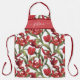 Tablier moderne avec un motif floral tulipes rouge et un nom de script féminin, écrit à la main. Personnalisez avec votre nom.