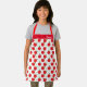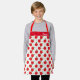 Un tablier avec un motif de pommes rouges et des pommes coupées en deux sur un arrière - plan blanc. L'tablier comprend une bande rouge en haut avec un nom personnalisable en texte blanc.