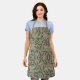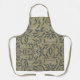 Ornate floral pattern with dark blue vines and leaves on a beige background. White circular flowers with gold accents add elegance and contrast.