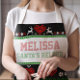 Theme Party's personnalisé laide décoration de Sweater de Noël avec votre nom et "Père Noël Helper" (ou autre titre court) dans le texte cousu de pull rouge et vert. Le design est agrémenté d'icônes festives, comme des arbres de Noël, des sucres de canne, des rennes, des coeurs rouges et des fleurs de poinsettia blanches et rouges. Notre tablier de Noël personnalisé fait un cadeau d'hôtesse enjoué! #Christmas #UglySweater #Personnalisé #GiftIdeas