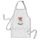 "Père Noël vous juge" drôle de slogan tablier de Noël avec un dessin de Père Noël à l'air suspect.