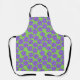Ce tablier a un motif ressort d'un champ de fleurs de perwinkle sur un arrière - plan vert.