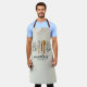 Personalized kitchen utensils apron designed for durability, style, and comfort. This cooking gift for anyone features styled green leaves, whisk, spoon, and baking rolling pin. All elements can be personalized with your own text, name, etc., including the pale eggshell background color of the apron can be changed to whatever color you prefer or remove it entirely.