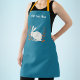 Ce tablier de cuisine est bleu profond avec un lapin blanc assis entre deux plantes oranges. Customisez votre texte avec le modèle.