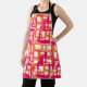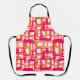 Ce tablier présente un design moderne du milieu du siècle avec des rectangles ouverts en rose sur des rectangles ouverts en orange.