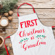 Ce tablier de Noël est parfait pour célébrer le premier Noël en tant que grand-mère. Le texte dit "Premier Noël comme grand-mère" en lettres rouges modernes sur un arrière - plan blanc.