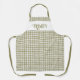 Ce tablier est prêt à être personnalisé avec un nom et présente ma main peinte en vichy style plaid avec une grille de bandes vert sauge contre un arrière - plan blanc.