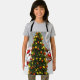 Tablier Santa claus and reindeer behind a christmas tree.j