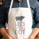 Mettez en forme votre maître-grilleur préféré avec cet amusant tablier pour barbecue d'été, avec une illustration de cochon de style vintage et une typographie "Let's pig out" en bleu marine et rouge estivale.