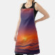 This apron features a serene sunset design with a gradient sky shifting from deep purple to glowing orange at the horizon. The sun casts a warm light over calm ocean waves, while birds soar gracefully across the sky, adding movement to the tranquil scene. Combining vivid colors with peaceful imagery, this apron is both functional and artistic, perfect for cooking, baking, or crafting. It brings a touch of nature’s beauty into your kitchen and makes a thoughtful gift for beach lovers, dreamers, or anyone who appreciates vibrant landscape art.