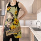 Awesome full graphic apron a un collage kitschy de teinte découpe photo des années 1930 de femme avec des lunettes steampunk ajoutées, une chaîne de perles, ruban lavi avec le texte "semi-blazer" sur l'arrière - plan de marguerites jaunes colorées