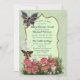 Histoires de conte de fées de tabouret rouge et blanc dans une vallée de champignons de rêve où de nombreuses créatures d'imaginaires vivent pour une nouvelle carte d'arrivée pour bébé