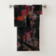 Dessin très abstrait de taches rouges flashy sur une base rocheuse foncée, texture numérique avec des taches gris dégradé qui peuvent causer une perception satinée contrastant avec des taches rouges qui rappellent les coups de pinceau.