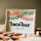 8x10 Fiesta Taco Bar Sign. Dieses Schild wird auf 8,5x11" schweres weißes Karton gedruckt. Sie schneiden den weißen Rand ab, um die Größe 8x10" zu erhalten. Sie können das Schild so rahmen oder anzeigen, wie Sie möchten.