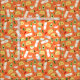 Dieses lustige mexikanische Essen Stoff zeigt Illustrationen von Tacos, Burritos und mehr auf einem orangefarbenen Hintergrund.