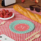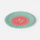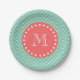 Tadelloses grünes Zickzack korallenrotes Monogramm Pappteller