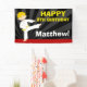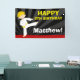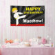 Eine themenorientierte Geburtstagsfahne der Spaß-Kampfkünste für Kinder. Vervollkommnen Sie für einen Taekwondo- oder Karategeburtstag Party. Fertigen Sie leicht mit Ihren Partyinformationen besonders an. Ausrüstungsbeschreibungen ein blonder behaarter Junge.