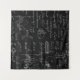 Tafel mit wissenschaftlichen Formeln und Wandteppich