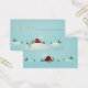 Une étiquette cadeau pour Noël. La nuit, un cabine d'hiver y vient avec un sapin de Noël et des cerfs dans la neige.