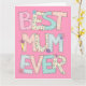 Feiern Sie den Muttertag mit dieser rosafarbenen Karte, die einen skurrilen Text enthält, der "Beste Mutter aller Zeiten" lautet. Fügen Sie einfach Ihre eigenen liebenden Wörter auf der Innenseite dieser Karte mit der beiliegenden Textvorlage ein.