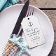 Diese schönen Tags sind eine großartige Möglichkeit, um Ihren Gästen zu danken, dass sie Ihre Hochzeitsfeier gemeinsam haben. Sie sind einfach Krawatte um Besteck, Weinglas oder Servietten, die mit dem Thema Marine Blau und Anker dekoriert sind.