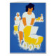 Blau-gelb Mitte des Jahrhunderts moderne 1950er 50er 50er rockabilly altmodische Vintag Retro Mutter Mama Mama Mama Mommy Mommes Stroll Baby Säugling Ankündigung