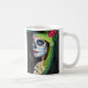 Ein frequentierendes Bild einer Frau gemalt für den mexikanischen Tag der toten Feier. Eine Tätowierung auf ihrer Schulter und eine Rose in ihrem Schal. Eine hellgrüne Farbe auf einem dunklen Hintergrund macht wirklich diesen Bild-Pop. Sie werden Liebe es!