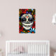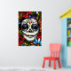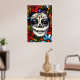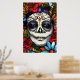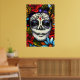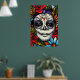 Lebhafter Blumentag des Toten Bildes auf einem hochwertigen Plakatdruck. Reiche, juwelenfarbene Blume umschließen das Gesicht einer Frau, das für den mexikanischen Tag der Toten gemalt wurde. Anpassbar in Ihrer Wahl des Papiers. Nehmen Sie sich Zeit, um die Rose zu riechen...las.