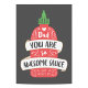 Helles und skurriles Kartendesign mit einer roten, heißen Saucenflasche auf gelbem Hintergrund mit den Worten "Vater Sie sind so phantastisch Sauce. Alles Gute zum Tag des Vaters." | Entwurf von Shelby Allison