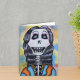 Dieser glückliche und lächelnde Tag des toten Skeletts ist von meinem ursprünglichen Farbbleistiftzeichnen. Dieses Skelett wird für ihren Tag der toten Feier in einem hell farbigen Schal von Orange und von Blauem gekleidet. Der Hintergrund hat einen Watercolorauftritt mit Gelbs, Rosa und Blues. Sehen Sie meinen Speicher für mehr Produkte mit diesem Bild.