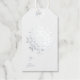 Dieses Geschenkschild wird mit einem festlichen Urlaubssnowflaktdruck in Silberfolie gezeigt. Passen Sie dieses Objekt an oder kaufen Sie, wie es ist.