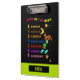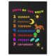 Wochentage mit farbenfrohen Texten auf schwarzem Hintergrund