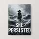 Ein auffallendes Schwarzweiß-Wandbild mit der Silhouette einer Frau, die durch turbulente Wellen stehend ist. Mit ihren Haaren, die im Wind wehen und aufrecht stehen, steht sie dem Sturm mit unerschütterlicher Entschlossenheit gegenüber. Die kühne Typografie unter ihr liest sich wie: "SIE PERSISTIERT", symbolisiert Stärke, Ausdauer und Mut angesichts der Widrigkeiten. Die dramatische Jahreszeit betont den Power innerer Stärke und Widerstandskraft, was dieses Stück zu einer kühlen Aussage für Ermächtigung macht.