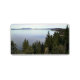 Der von Bergen umgebene Ozean und die Kiefernwälder am blauen Himmel