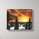Winter in der arktischen Taiga. Mit der Sonne am Horizont leuchtet der Schnee und der Himmel brennt orange und gelb. Passen Sie Ihren eigenen Text an.