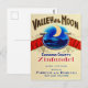 Ein Vintages, farbenfrohes Weinetikett aus dem Mondtal, Sonoma-Landkreis, Kalifornien, das auf einer Postkarte umgelegt wurde