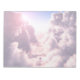 Ein einsamer Heißluftballon schwimmt durch den hellrosa Canyon zwischen hohen Wolken. Die Sonne, tief im pastellfarbenen Himmel, leuchtet hinter dem Rand der Billows und sendet Lichtströme zum Betrachter.