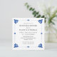 Diese Probe-Dinner-Einladung im Talavera-Stil wird durch die wunderschöne Kachel- und Volkskunst inspiriert, die in Mexiko und im gesamten amerikanischen Südwesten zu finden ist. Die kühn blaue Farbe und die klassische Typografie schaffen ein elegantes Aussehen, das sowohl modern als auch traditionell ist. Ihre Gäste werden die Liebe erhalten diese markante talavera laden.
