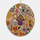 Illustrated talisman pattern, originally drawn in ink. Features various objects believed to bestow good fortune, health and happiness. Available in several colours.