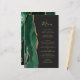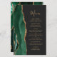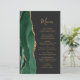 Die links Kulisse dieses eleganten, modernen Hochzeitsmenüs besticht durch einen smaragdgrünen Aquarellstreifen, der mit vergoldetem Imitat-Glitzer bestickt ist. Der anpassbare Text kombiniert skurrile, goldfarbene Handschrift-Skripte mit Copperplate-Schriftart auf schwarzem Schiefer-Hintergrund. Die Rückseite ist mit einem smaragdgrünen und goldgelben Dekor ausgestattet.