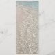 Große Hochzeitskarte mit Sand und tropischem blauem Wasser. Passen Sie den blau-grünen Text mit einem Titel an, geben Sie die Namen des Paares ein und listen Sie alle Menüoptionen auf. Größe 4x9 Zoll mit mehr Meer und Sand auf der Rückseite. Wählen Sie ein beliebiges Papier, oder gehen Sie zum Download - oder tun Sie beides.