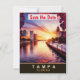 Invitation de mariage Tampa save the date, carte postale de voyage. Coucher de soleil sur le front de mer de la ville.